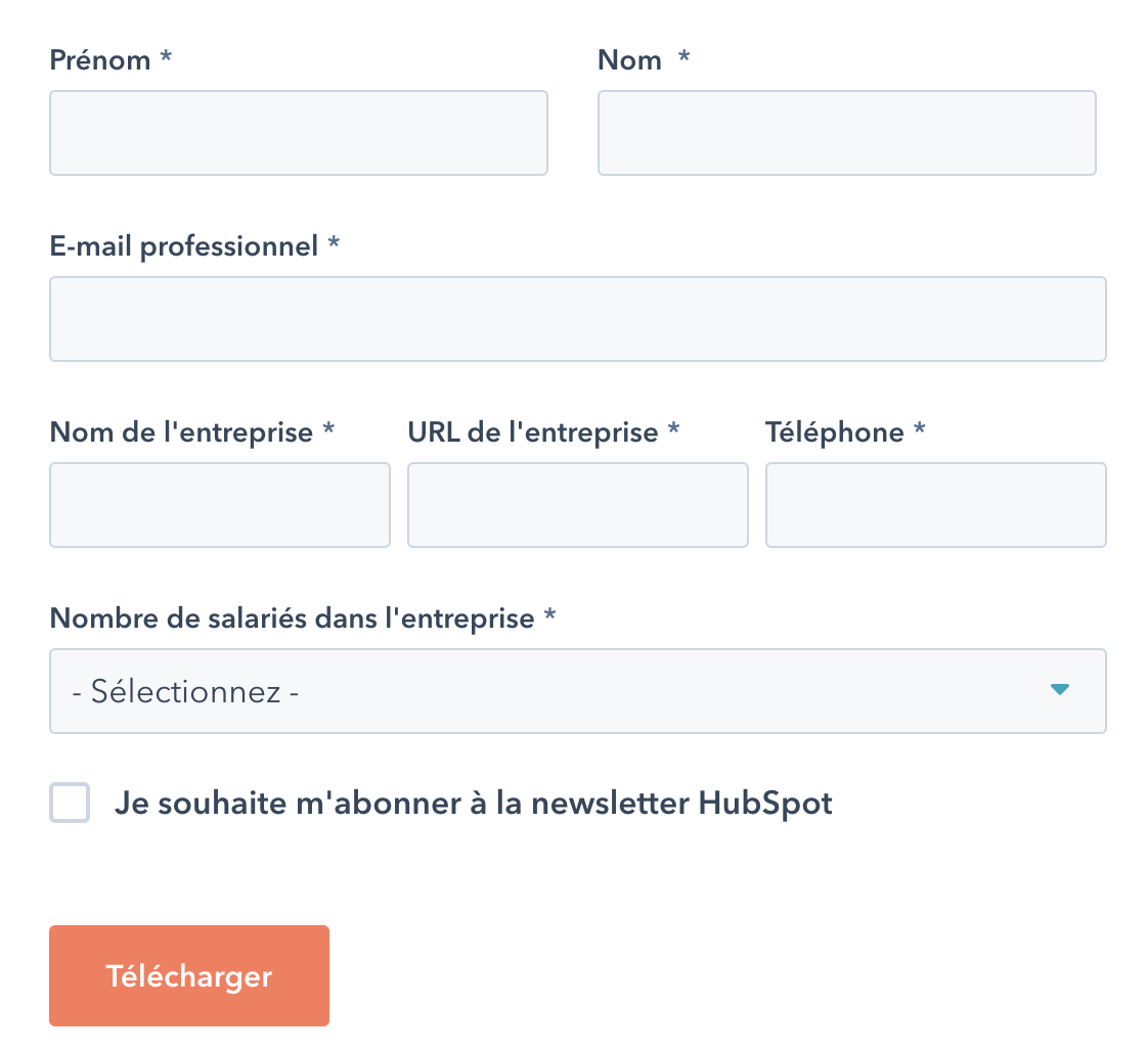 En B2B, cela concernera plutôt la possibilité de télécharger un document en échange de ses informations, comme avec Hubspot qui propose une étude en téléchargement :