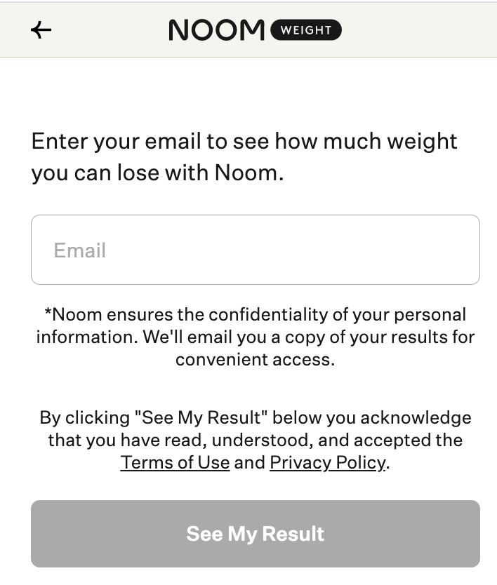 En plus de collecter un grand nombre d’informations précieuses, Noom récupère également l’email des utilisateurs à la fin du questionnaire :